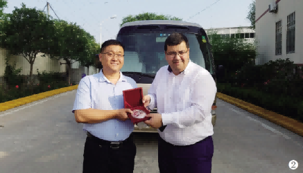 佳澤睿安集團董事長(cháng)邵輝向烏茲別克斯坦國家道路交通建設委員會(huì )主席贈送上合峰會(huì )紀念品